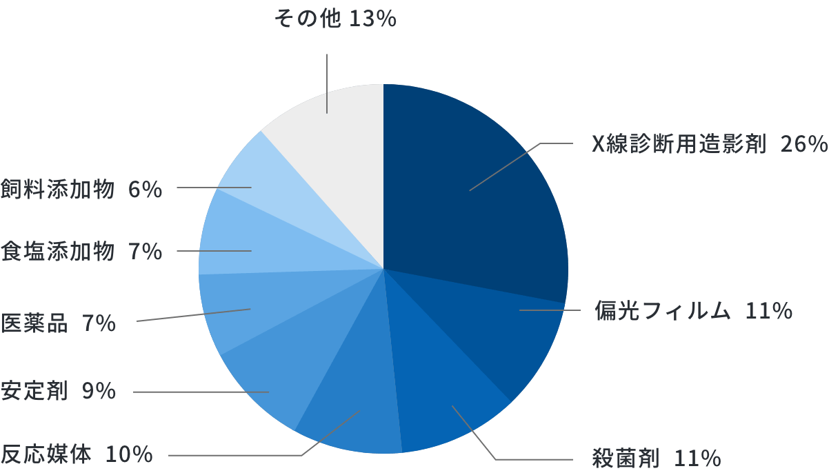 うがい薬や造影剤、放射性物質による被ばくを防ぐために使われることもあるヨウ素。人体の健康に貢献するだけでなく、スマートフォンやパソコンの液晶用偏光フィルム、化学品の反応触媒などにも使われます。